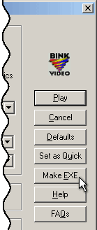 скачайте с нашего сайта (вбейте в поиске) инструменты RAD Video Tools. Откройте только что полученный файл и нажмите "Bink it!". Программа начнет конвертацию вашего видео в .bik формат. Соответственно воспроизвести его смогут только те, у кого установлен Bink плеер. Для того, что бы все смогли увидеть ваше творение - конвертируйте видео в исполняемый .exe файл. Для этого выберите ваш файл и нажмите в главном меню кнопку "Advanced Play". В открывшемся окошке вам необходимо нажать только на "Make EXE".